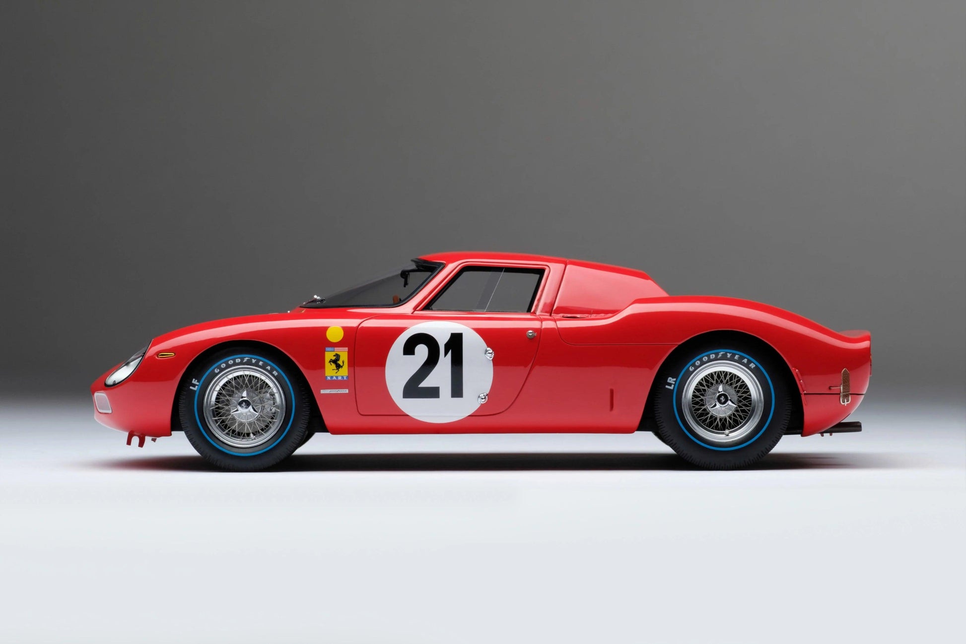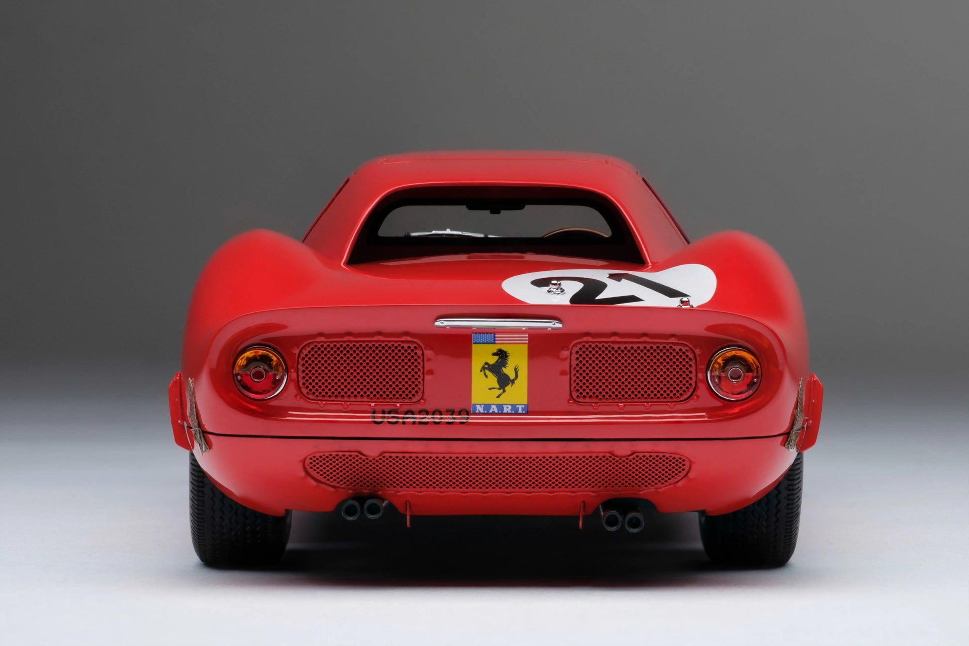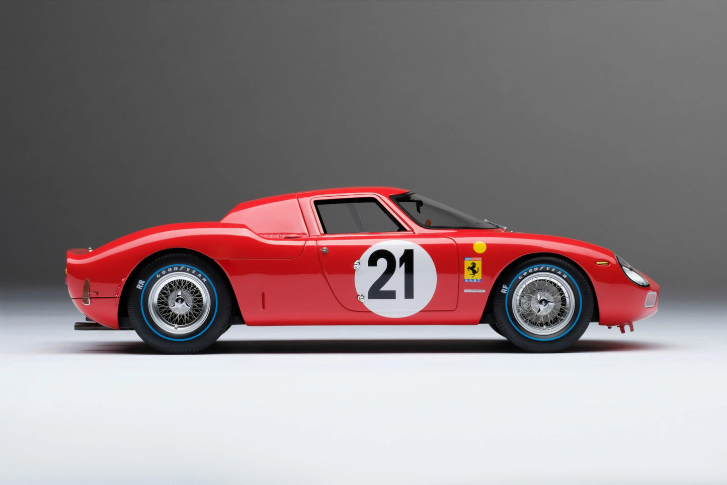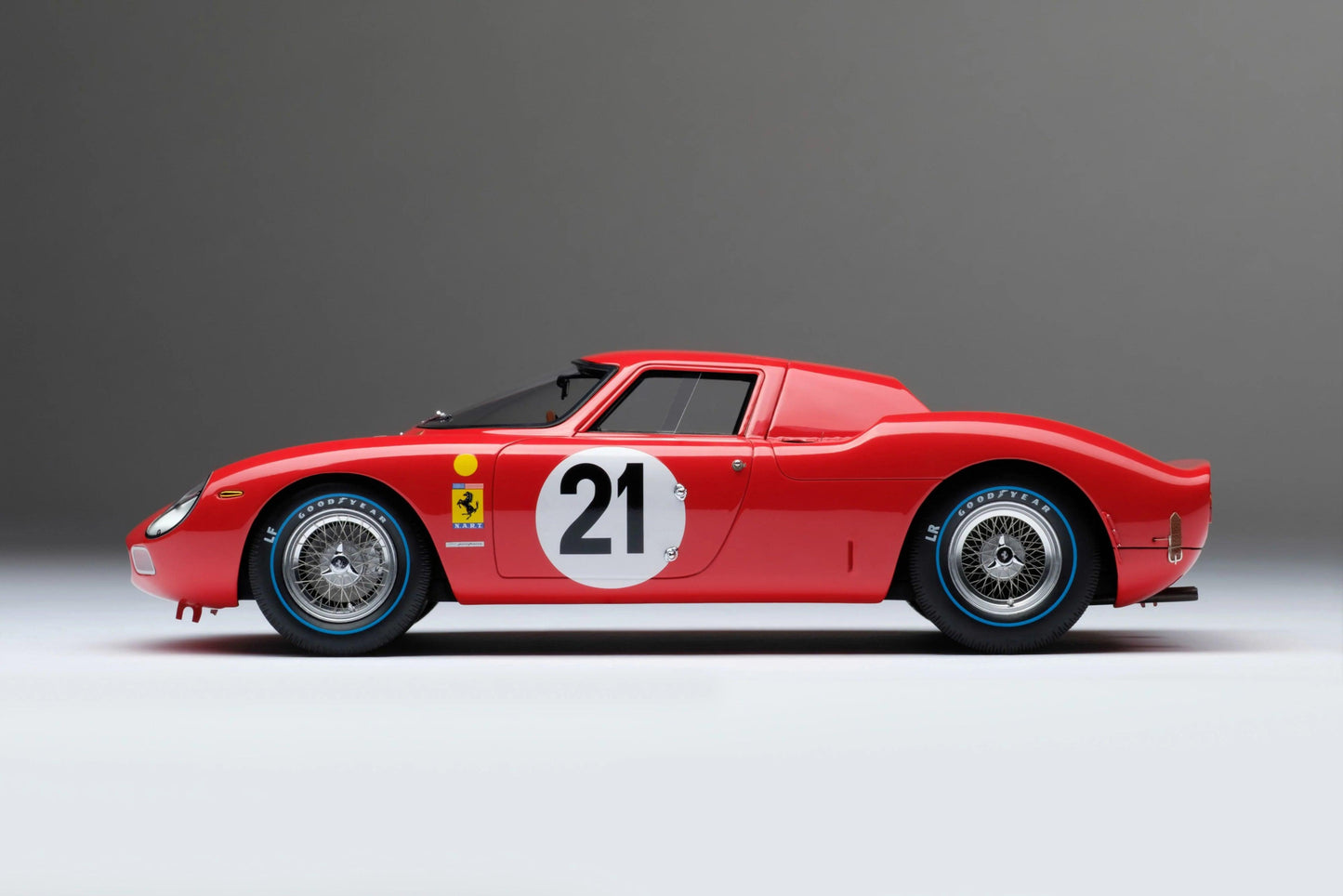 - Scale 1:18: The model is 22 cm long and offers an impressive representation of the Ferrari 250 LM in its winning form.