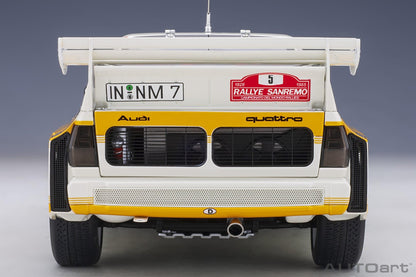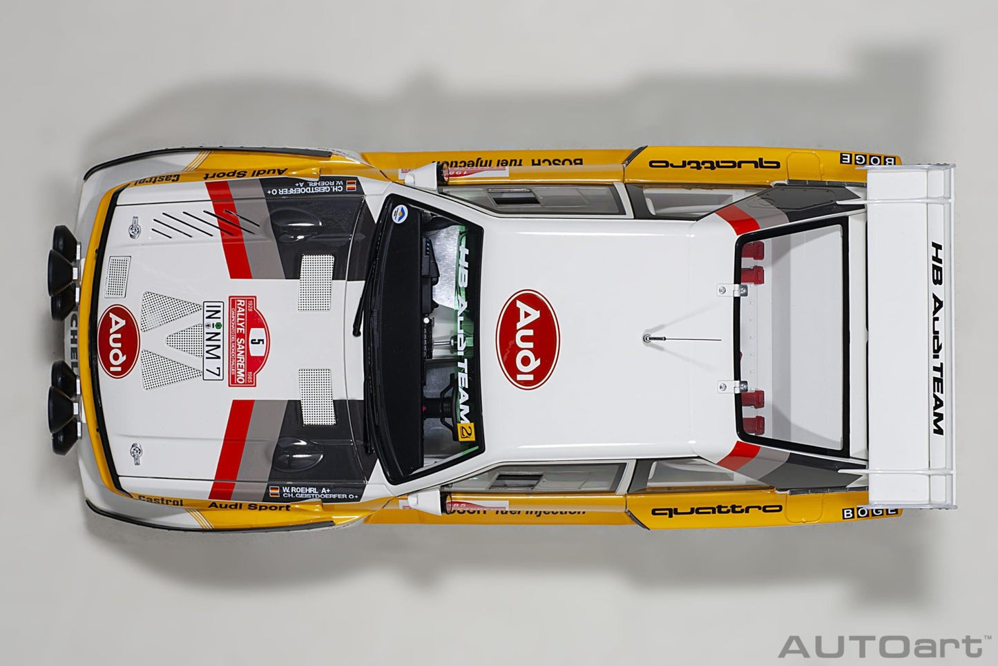 AutoArt Audi Sport Quattro S1 Rally San Remo 1985 Winner W. Röhrl/C. Geistdörfer #5 1:18 model