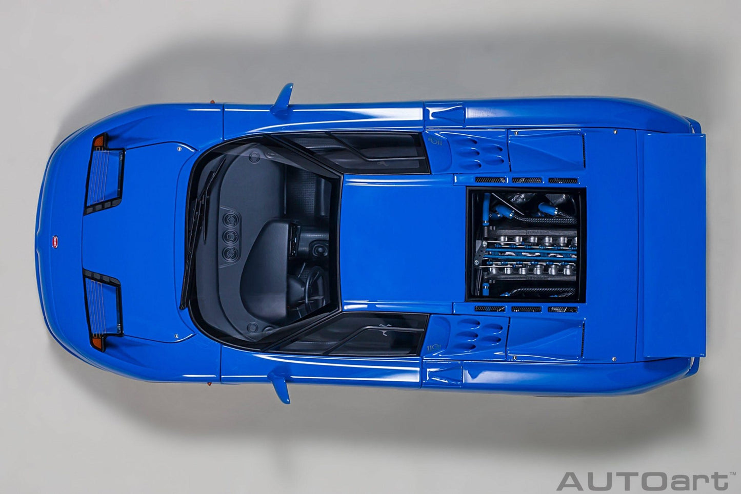 - Detailed engine compartment: The engine compartment has been recreated with great care and attention to detail and offers a realistic representation of the real Bugatti engine.