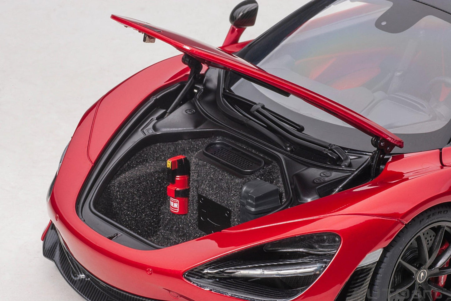 - Detailed engine compartment – The engine compartment shows the precise replica of the McLaren 720S, with all the important elements that make the vehicle a high-performance wonder.