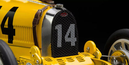 Experience the classic charm of one of the most famous racing cars in history with the CMC Modelcars Bugatti Type 35 - Belgium 1:18 model. This hand-assembled precision model made of over 930 parts perfectly captures the unique beauty and technology of the legendary Bugatti Type 35. With its striking yellow Grand Prix racing paint and detailed replicas of the functional components, this model is an absolute must for collectors and fans of historic racing cars.