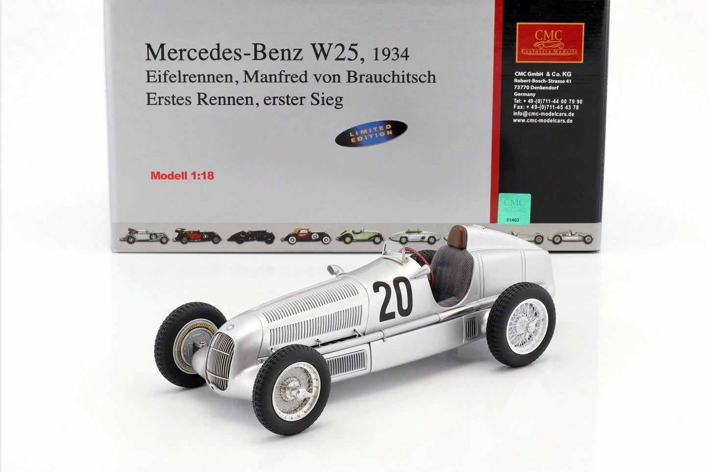 CMC Modelcars Mercedes-Benz W 25, Eifel race 1934, #20 by Brauchitsch 1:18 Model