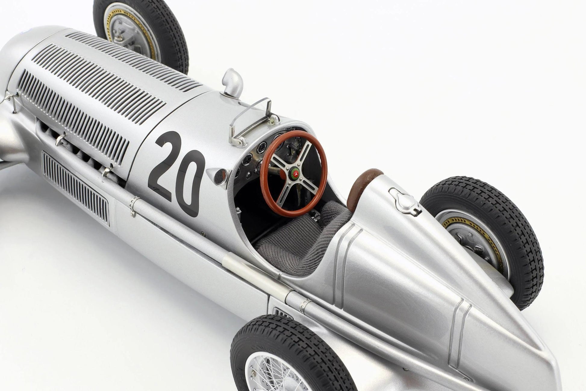 The CMC Mercedes-Benz W 25, Eifel Race 1934, #20 by Brauchitsch 1:18 model is an impressive replica of the legendary racing car that was driven by Hermann von Brauchitsch at the 1934 Eifel Race. This hand-assembled metal precision model consists of more than 890 parts and offers stunning detail and authenticity. It is the perfect collector's item for all lovers of classic racing cars and the history of motorsports.