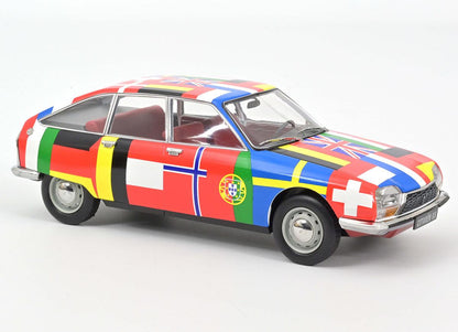 The Citroen GS 1972 Flags is a unique model that exhibits the typical Norev quality and reflects the original in every respect. With its eye-catching flag paint and detailed workmanship, this model is a real eye-catcher for collectors and car enthusiasts. The exact replica of the Citroen GS not only offers a visual delight, but also a piece of automotive history that should not be missing from any collection.