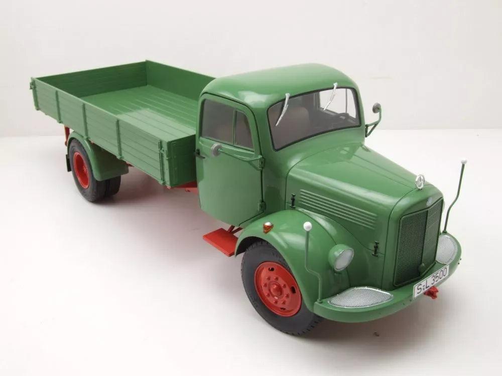 This Schuco Mercedes-Benz L3500 flatbed truck with tarpaulin - Green 1:18 model was in the usual high quality Schuco-Quality produced and reflects the original as best as possible. It combines precise attention to detail with exclusive features, perfect for Collector and Model building enthusiasts.