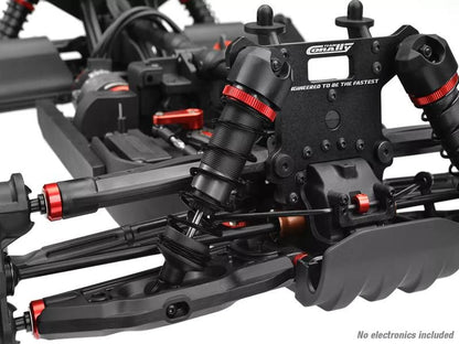 - Big-bore shock absorbers: 16 mm oil pressure shock absorber with Aluminum threaded bodies, thick pistons and reinforced lower ends - optimal damping for Bashing and rough Off-road trails
