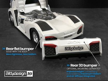 Die Bittydesign IRON definiert das 1:10 Truck Racing neu! Entwickelt mit modernster Designtechnologie und getestet unter realen Rennbedingungen, vereint diese Karosserie kompromisslose Performance mit atemberaubender Optik. Hergestellt aus hochwertigem Lexan, bietet sie eine unschlagbare Aerodynamik, Stabilität und Fahrkontrolle. Perfekt geeignet für 190mm Elektrofahrzeuge.