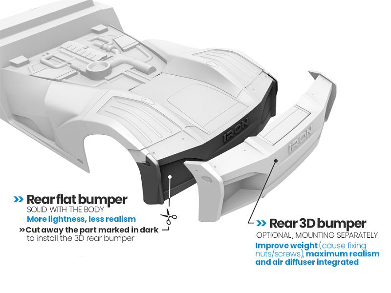 - Viel Zubehör enthalten – Heckspoiler, Kabinenrückwand, 3D-Stoßfänger-Diffusor, Maskierfolien & Aufkleberbogen.